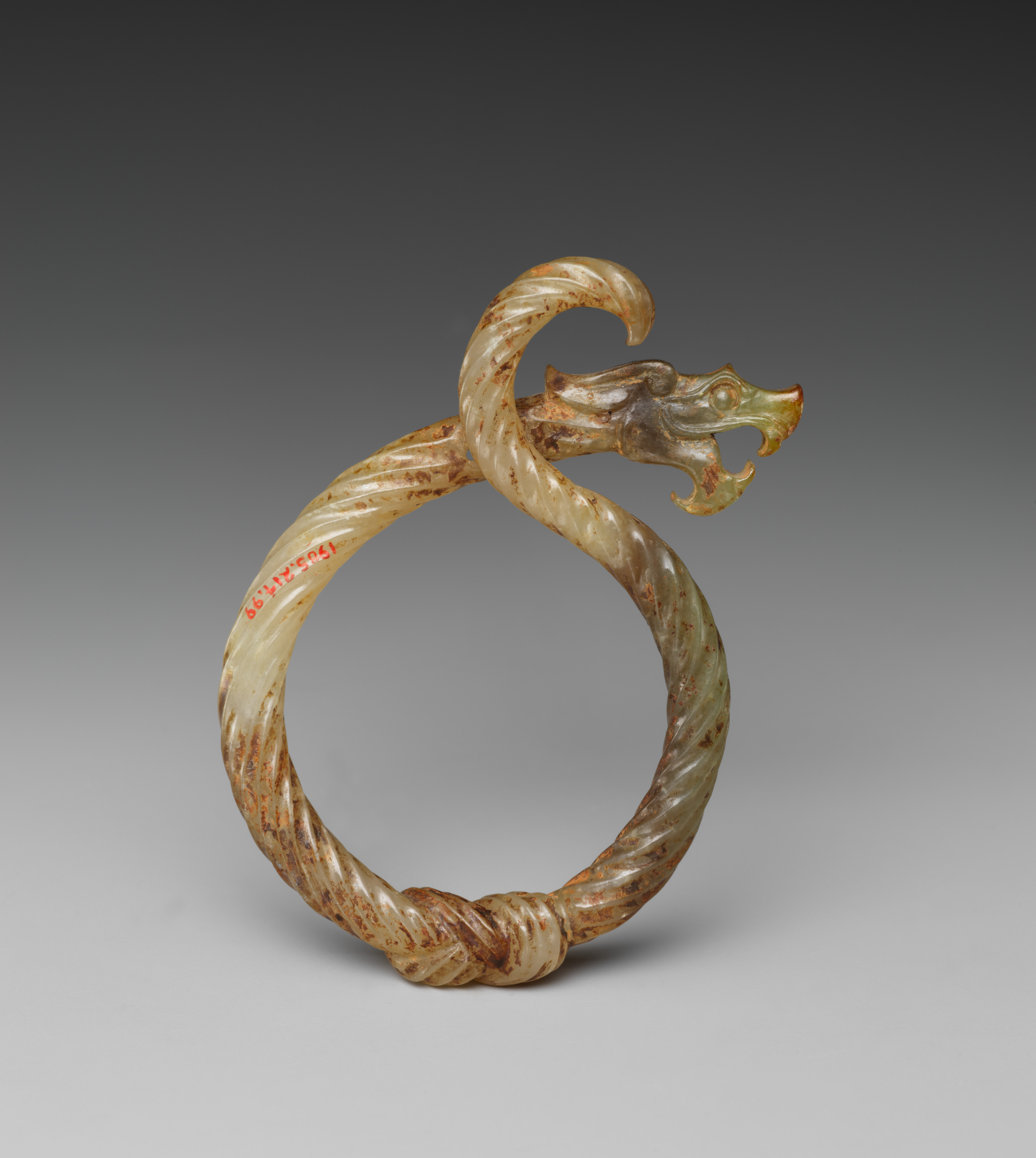 盘结龙形佩饰,中国东周(公元前770年–公元前256年),公元前3世纪,玉(软玉),高7.9cmx宽5.2cm,美国大都会艺术博物馆收藏
