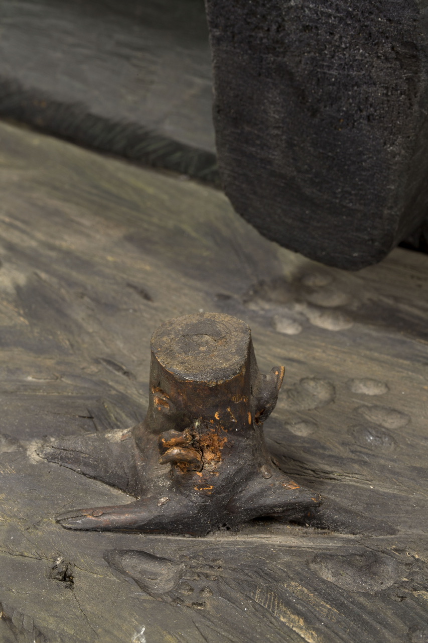 塔特拉博物馆收藏着多件让萨的雕塑作品,其中最突出的是这尊《大地的圣殇》。让萨曾表示,通过借用基督教传统的主题,他是在讲述当代人的故事。他曾说:“生命早已存在于木头之中……”作品中,一位穿着朴素长裙、头戴面纱与王冠的女性,端坐在一个方形基座上。她紧紧抱着儿子的遗体——如果不是他脸上的胡茬,人们可能会误以为她怀中是一个婴儿。仔细观察她坐着的基座,可以看到极其细微的痕迹:鸟爪、兽足、鸟巢与蛋、河流的线条,或树干的纹理。这些元素都非常微小,必须细致观察才能注意到。玛利亚与耶稣的形象是画面的中心,但他们与他们所栖息的大地之间有着不可分割的联系。玛利亚服饰的朴素和她的面部线条,与基座上呈现的生命景象相呼应。他们并非以某种凌驾的姿态出现,而是与周围环境共处、共生,是这个宇宙不可分割的一部分。在当代生态与人类环境关系的讨论背景下,安东尼·让萨的这件《大地的圣殇》显得格外有趣且切题。