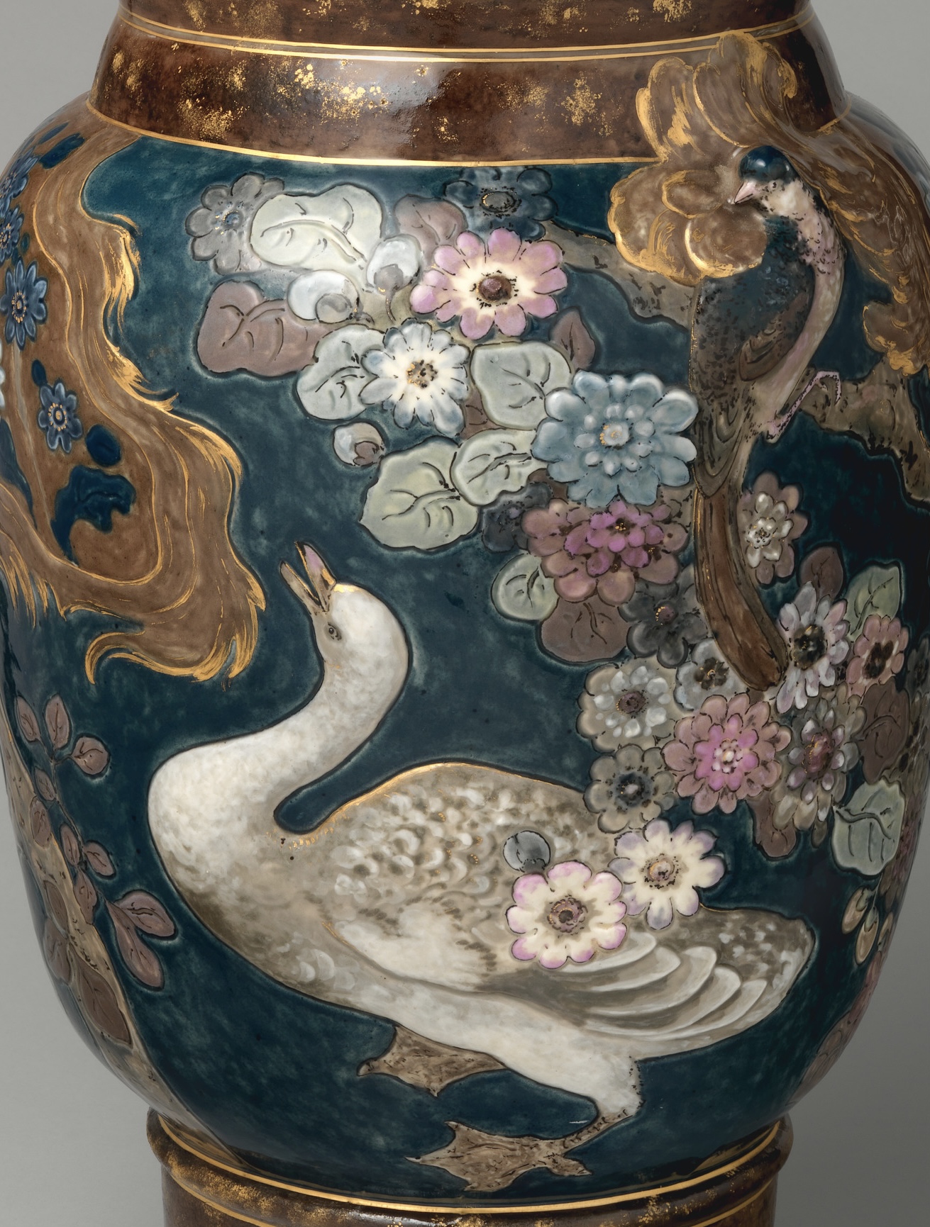 天鹅陶瓷瓶,哈维兰公司(Haviland&Co.,美法合资,1864–1931),约1880年,法国巴黎,瓷器,65.1×32.7厘米,带底款标识,美国大都会艺术博物馆收藏