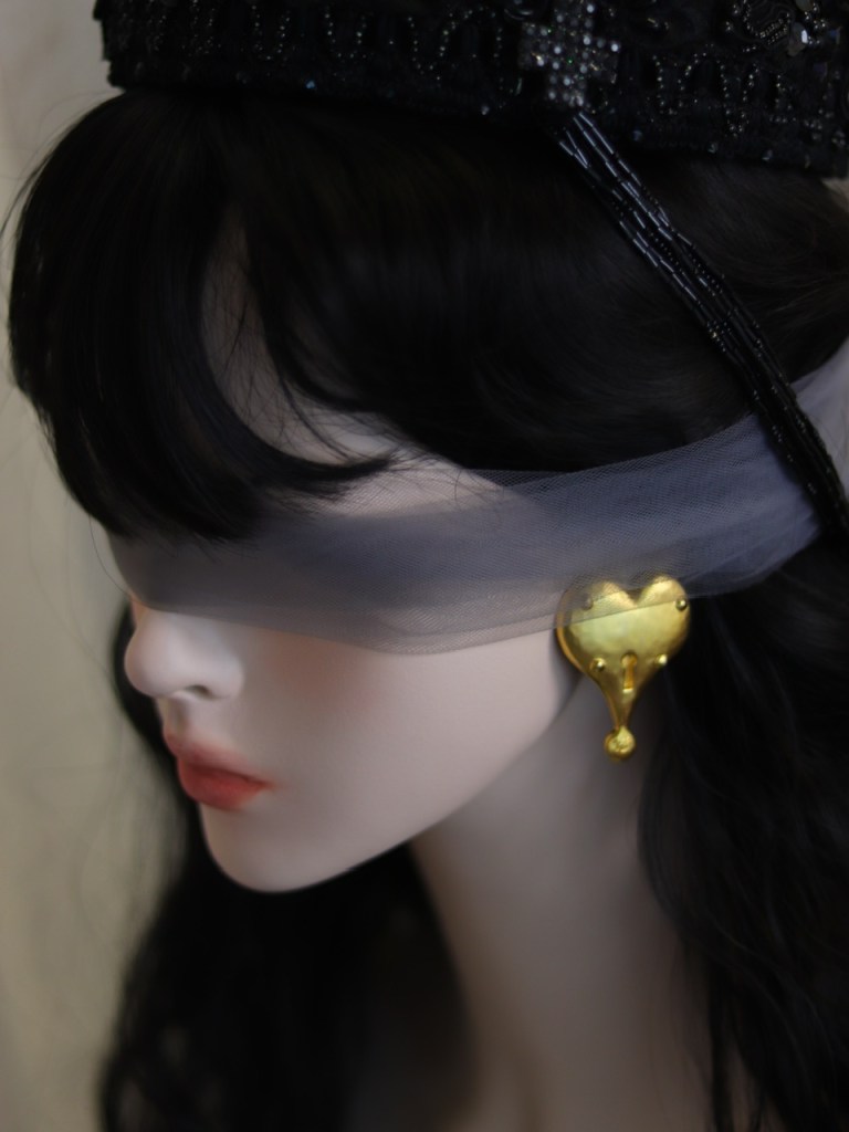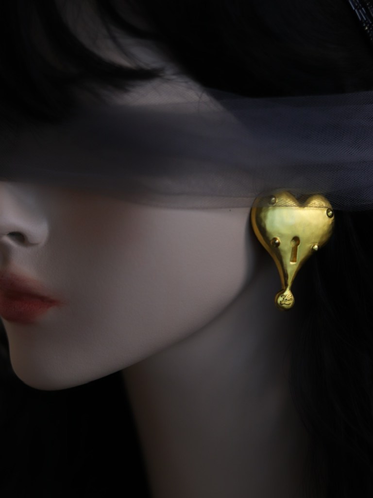 ①.心形锁钥匙孔桃心,老佛爷KL收藏级标志性设计;1980S,镀金,3.5X4.7CM,单只重约15G,成色如图-佳-其中一只靠近锁眼处有一细微划痕(20190213)