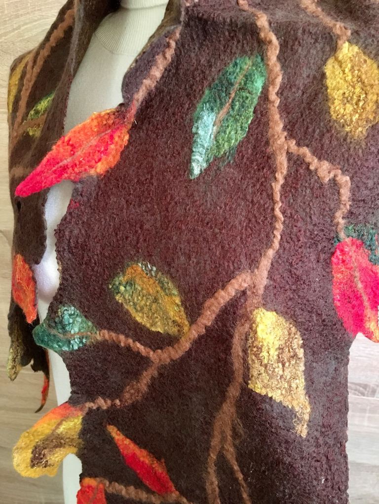 ②.秋色秋叶秋季红叶枝;「调色盘」艺术家·美利奴羊毛毡围巾披肩系列;咖啡色美拉德色;UK英国手艺人Jurate;使用湿毡技术,用柔软的美利奴羊毛精心手工毡制而成,温暖、柔软、明亮;长约165厘米/65英寸,宽约25厘米/10英寸;美利奴羊毛/丝绸/丝绸纤维;护养:如有需要请在温暖的肥皂水中手洗,轻轻挤压,平铺晾干