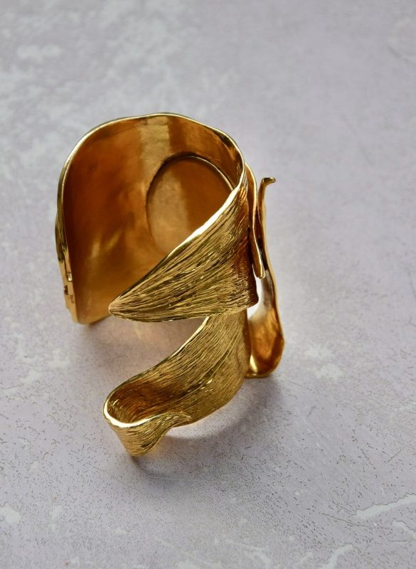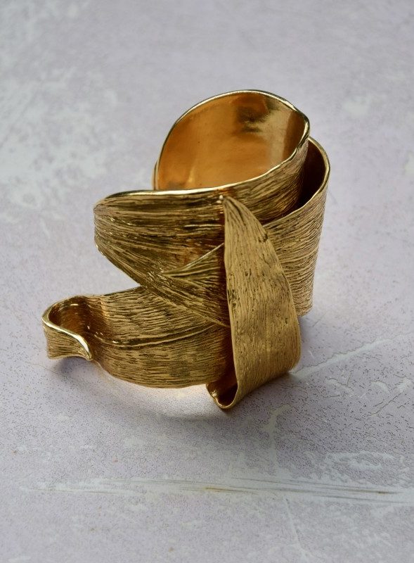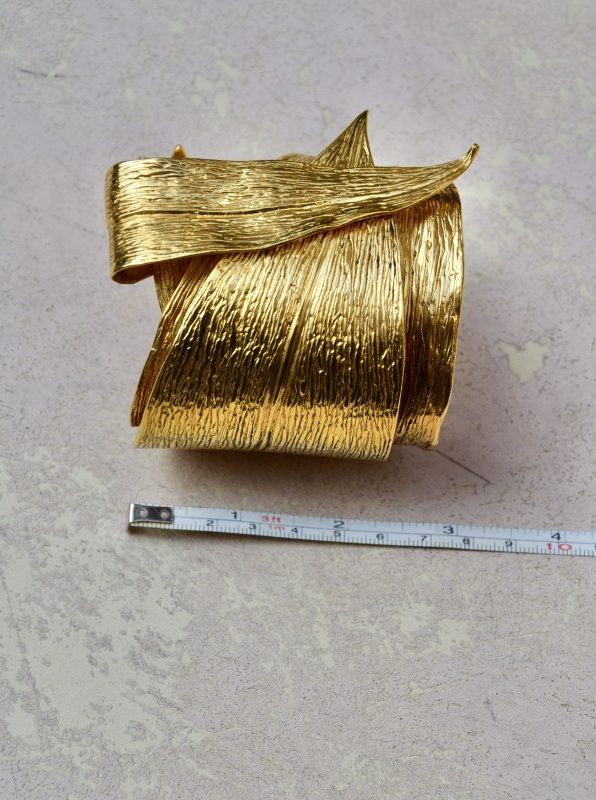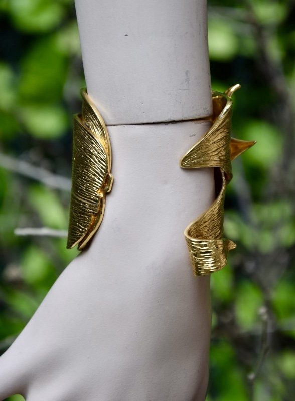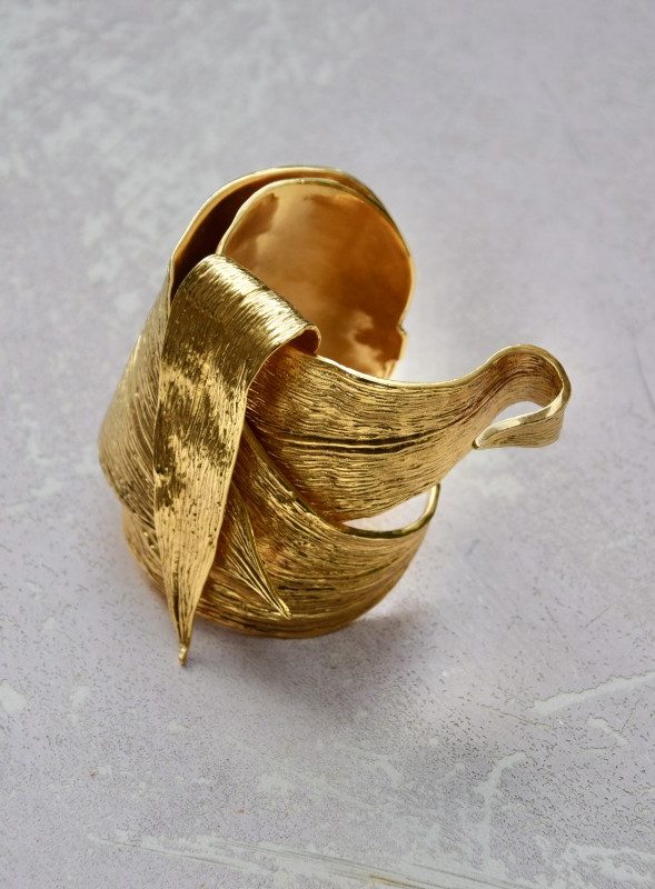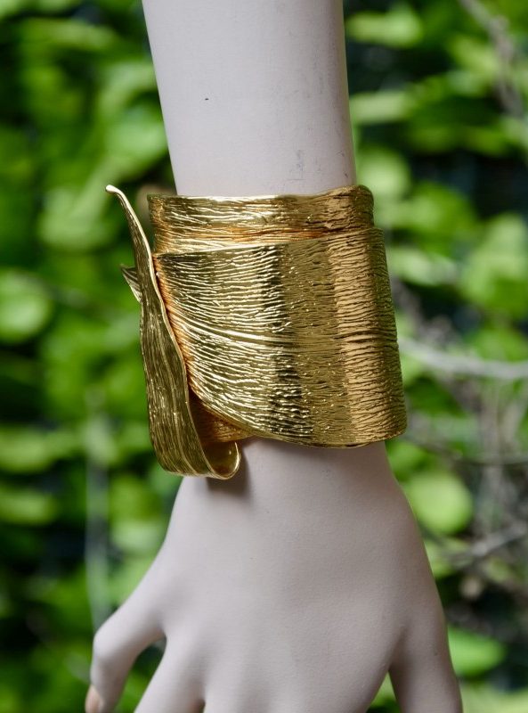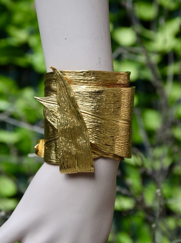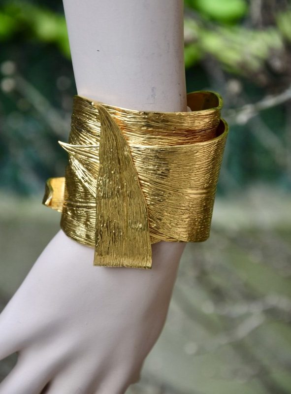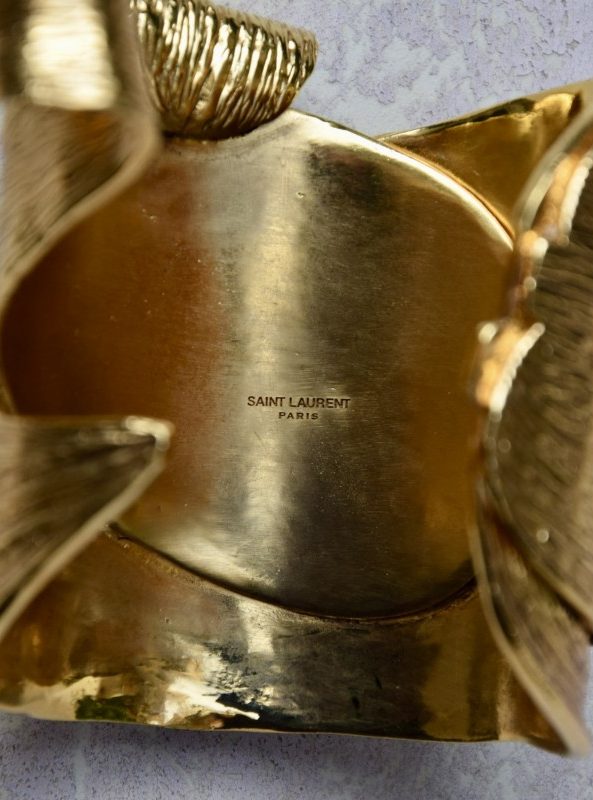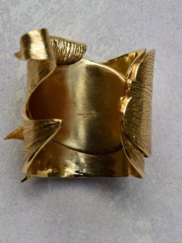 Yves Saint Laurent是1961年由法国设计师创立的高级时装品牌,以打破传统界限而闻名,尤其在将男性元素引入女性服装方面具有重要影响。品牌与金匠大师Robert Goossens的合作在配饰与时装珠宝领域尤为突出,其作品以夸张的体量和艺术气息著称,灵感来源广泛。Yves Saint Laurent的时装珠宝不仅是造型的延伸,也承载着品牌的风格与表达,成为中古收藏中的经典之一。
