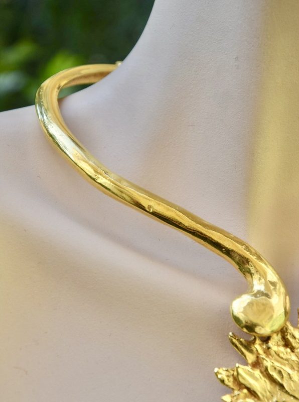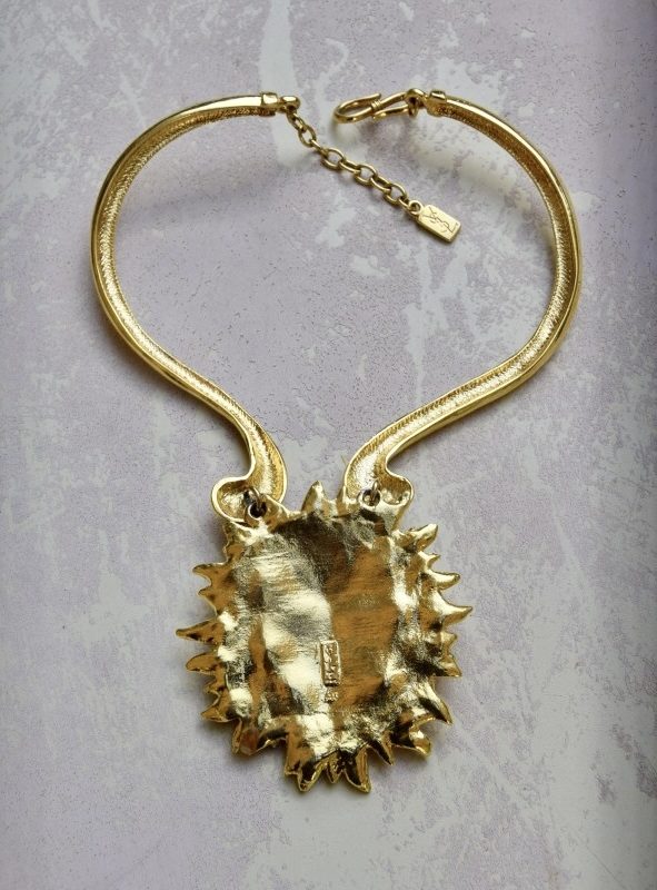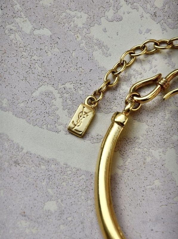 Yves Saint Laurent是1961年由法国设计师创立的高级时装品牌,以打破传统界限而闻名,尤其在将男性元素引入女性服装方面具有重要影响。品牌与金匠大师Robert Goossens的合作在配饰与时装珠宝领域尤为突出,其作品以夸张的体量和艺术气息著称,灵感来源广泛。Yves Saint Laurent的时装珠宝不仅是造型的延伸,也承载着品牌的风格与表达,成为中古收藏中的经典之一。