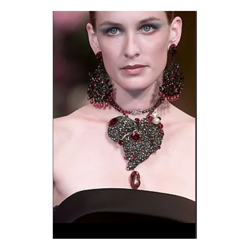 Yves Saint Laurent是1961年由法国设计师创立的高级时装品牌,以打破传统界限而闻名,尤其在将男性元素引入女性服装方面具有重要影响。品牌与金匠大师Robert Goossens的合作在配饰与时装珠宝领域尤为突出,其作品以夸张的体量和艺术气息著称,灵感来源广泛。Yves Saint Laurent的时装珠宝不仅是造型的延伸,也承载着品牌的风格与表达,成为中古收藏中的经典之一。