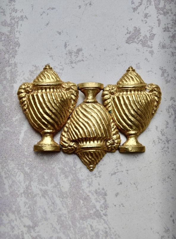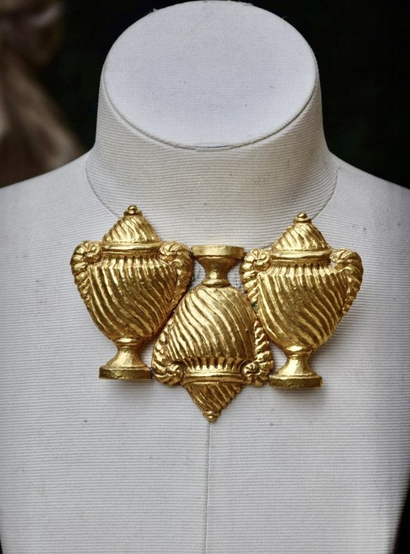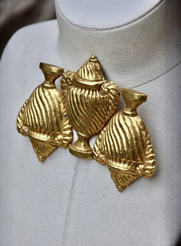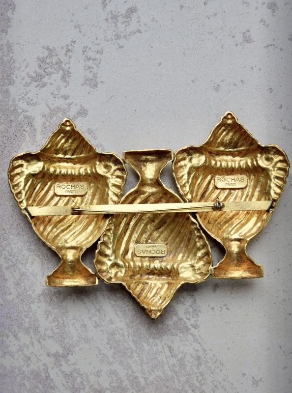 Rochas由Marcel Rochas于1925年在巴黎创立,以优雅和结构感的设计闻名,其首饰将古典灵感与现代造型结合,强调装饰性与雕塑感,借鉴古希腊、古罗马元素,通过金属和树脂等材质重新诠释,作品在比例上大胆且轻盈平衡,展现庄重与戏剧性的视觉效果,整体融合古典意象与法式优雅,形成独特的复古与现代张力,具有观赏性和收藏价值。