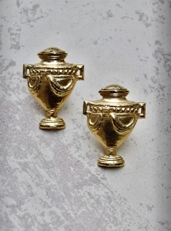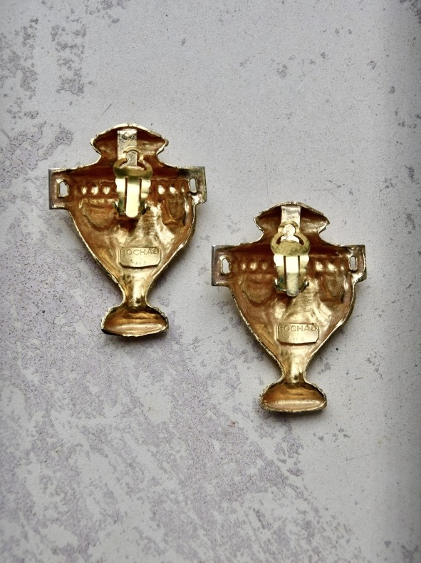 Rochas由Marcel Rochas于1925年在巴黎创立,以优雅和结构感的设计闻名,其首饰将古典灵感与现代造型结合,强调装饰性与雕塑感,借鉴古希腊、古罗马元素,通过金属和树脂等材质重新诠释,作品在比例上大胆且轻盈平衡,展现庄重与戏剧性的视觉效果,整体融合古典意象与法式优雅,形成独特的复古与现代张力,具有观赏性和收藏价值。