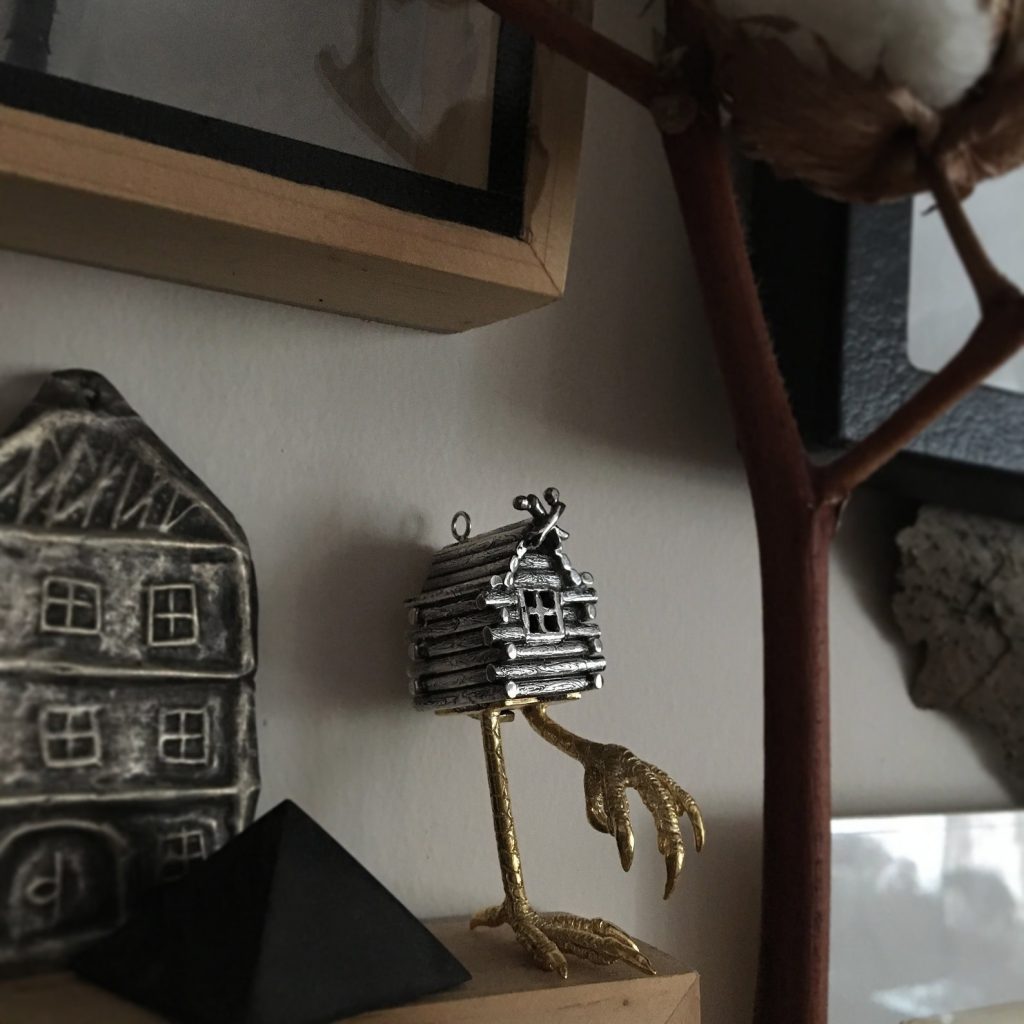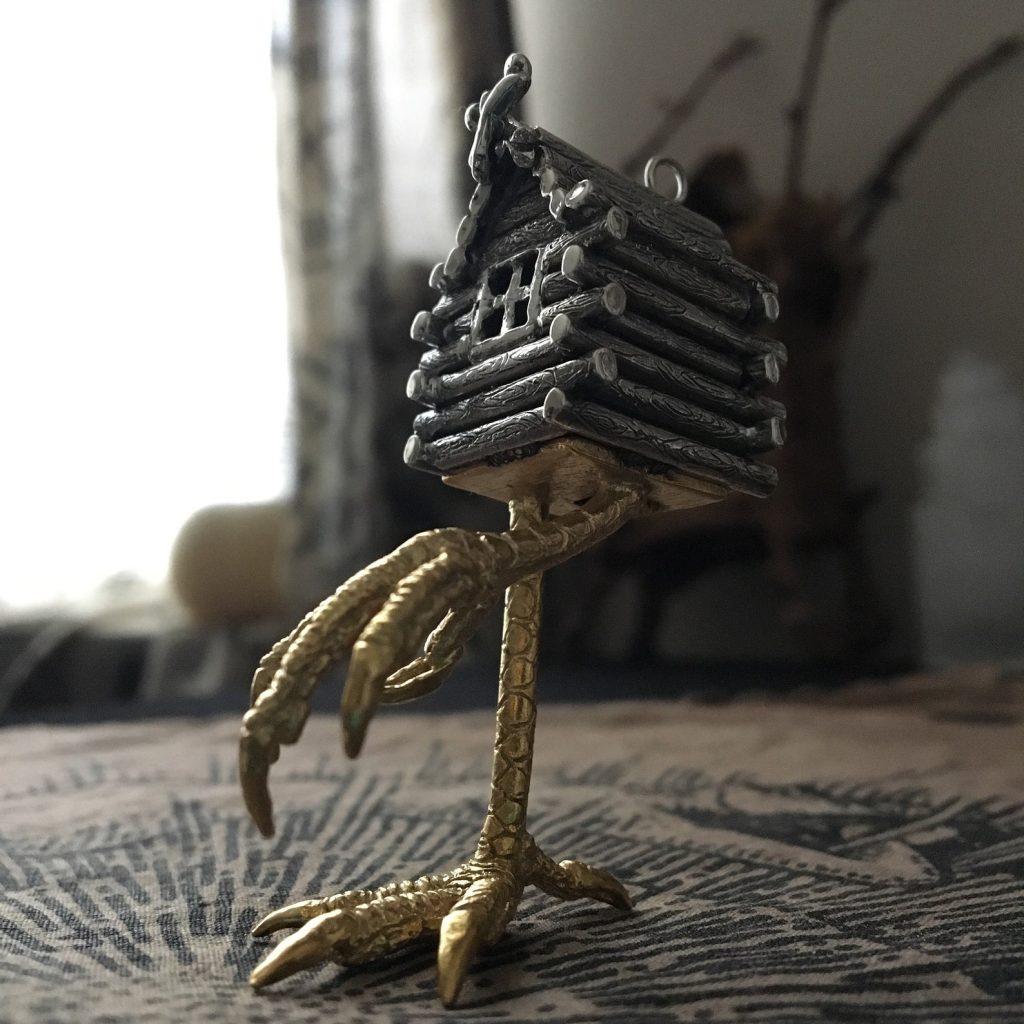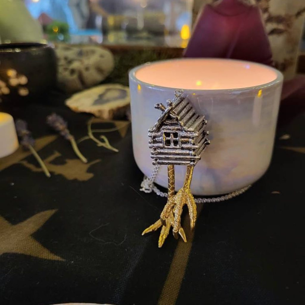 Baba Yaga(巴巴雅加)是斯拉夫民间传说中最具代表性的神秘形象之一,常被描绘为居住在森林深处的老妇。她的居所——立于“鸡足”之上的小屋——能够移动,被视为一种介于现实与异界之间的存在。她的形象具有强烈的双重性:既是吞噬与毁灭的力量,也是一位守护知识与智慧的引导者。寻求她帮助的人,必须通过考验与试炼;若缺乏诚意或准备,则可能面临危险。关于小屋的形态,有学者认为其源于北方游猎民族的高架木屋结构,用以防止野兽侵扰;也有观点将其与古老的祭祀或葬仪传统相联系,使这一意象更具神秘与象征意味。一言以蔽之,Baba Yaga象征一种临界与转化的力量——她存在于森林、门槛与路径之间,既试探,也指引。