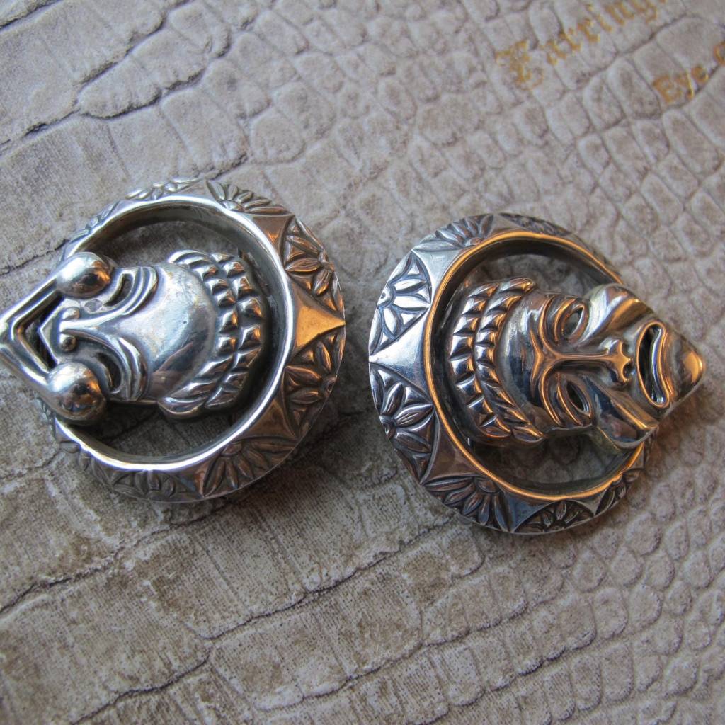 • ②.古典喜剧与悲剧面具胸针套装;以古希腊戏剧表演中的经典面具为灵感,呈现喜剧与悲剧的情绪表情。造型精巧,可搭配衬衫/西装翻领或作为造型点缀,保留了年代感的趣味与收藏价值。925纯银;1940–50年代;约3.3–3.6cm;背面带品牌签名;藏于美国