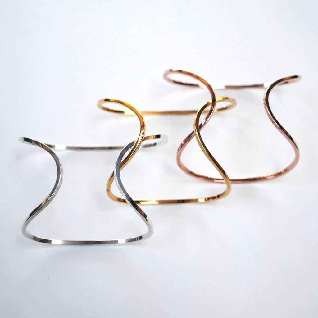 ②.大地女神瑞亚Rhea手镯·Celestial(古希腊天神)系列;英国手艺人Emma作品;以曲线为核心的开放式结构,跨越手背与手腕之间。可正反佩戴,在手腕周围形成近似“光环”的轮廓,形成一个轻微的「场域」,象征自然母神的围合与保护(承托)。均码(手环略具弹性,可微调贴合手掌),亦可定制尺码;材质有(黄铜/镀金/玫瑰金镀层/925纯银)四种可选