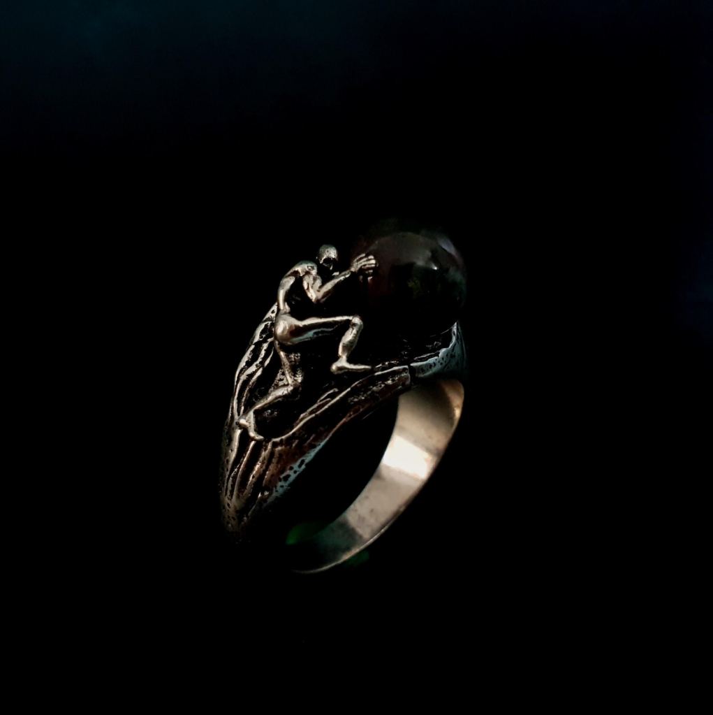 ②.「应当设想西西弗斯是幸福的。」古希腊神话人物戒指环;英国手艺人Nathan作品;加缪的西西弗斯:明知没有既定意义,也没有结果保证,仍然清醒去做,仍然用心去爱。重量12-30g取决于尺码,定制尺码;默认925纯银做旧处理-如图(亦提供其他材质组合与表面处理方式)