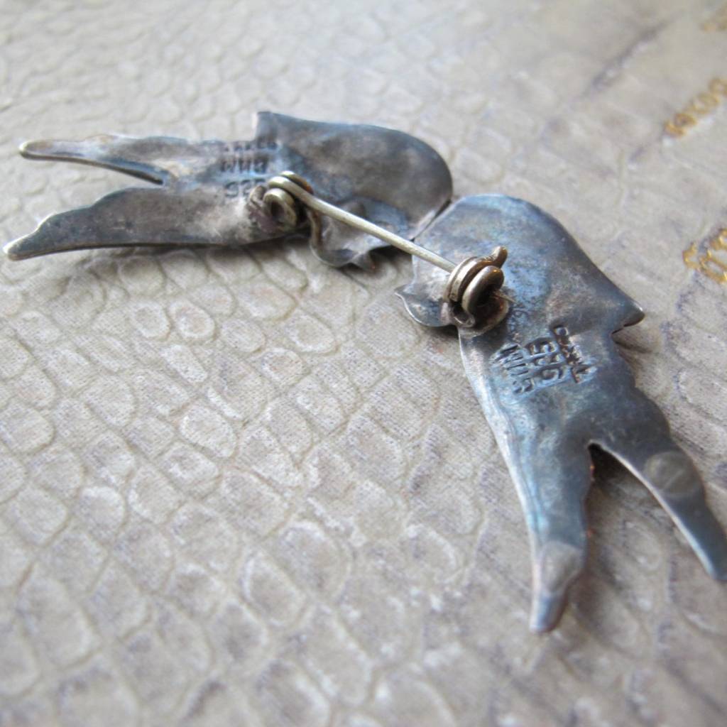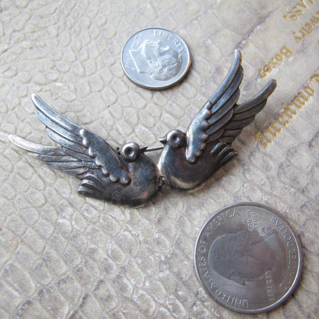20世纪中期的墨西哥银饰,尤其是Taxco地区,以其鲜明的手工风格与文化表达而著称。设计常融合本土传统与现代主义,在简化形态的同时保留象征意味。“双鸟”这一母题常被理解为爱、陪伴与连接,而“鸽子”在更广泛的文化中也象征和平与温和的力量。这种表达在当时与Frida Kahlo所在的时代气息相呼应——强调情感的直接呈现,同时保留个人与文化身份的印记。在形式上,这类作品也常让人联想到设计师Margot de Taxco的风格:线条明确、结构简洁,却带有一种不经修饰的情感强度。