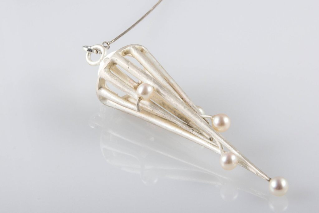 ②.「本体的喜悦」囚笼(珍珠)·美神系列·项坠项链项圈;美国手艺人Zbigniew作品|有时,美之所以让人疲惫,是因为我们试图依附它、维持它、成为它。对身体的照顾——睡眠、饮食、运动,以及阅读,是为了保有一种对生活的掌控感,让自己变得稳定而清晰;而美是随之浮现的副产品。在你意识到,你可以只是经历和享受各种形相,而不被它定义,你已在它的囚笼之外。|925纯银/淡水珍珠;吊坠约2.54×8.89cm,项链长度约20.32cm;每件珍珠/宝石的颜色与形状,以及银的表面处理,雕塑尺寸略有不同;亦可定制尺寸|x10326