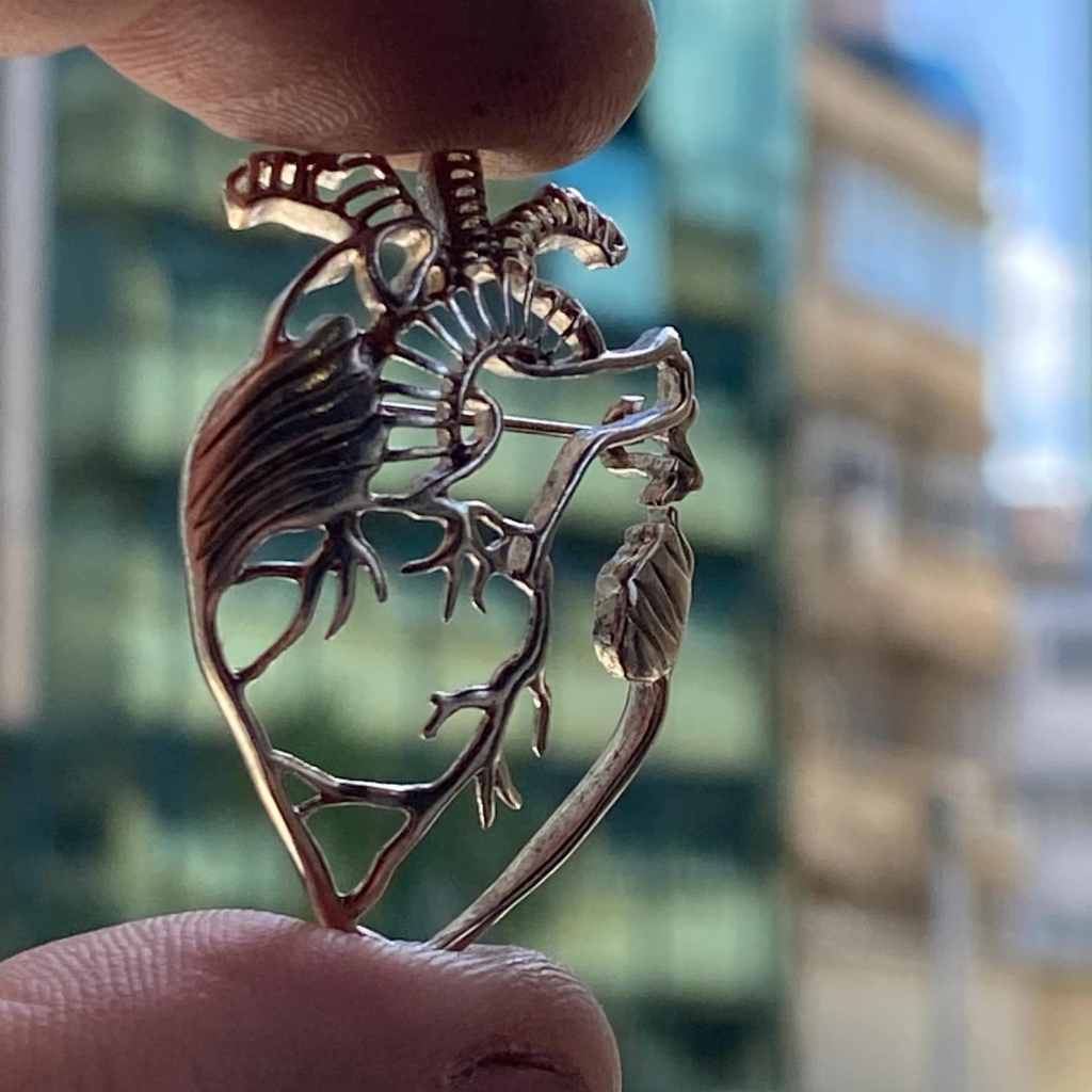 • ②.「如实本义」心脏·胸针·源于身体智慧的解剖学艺术雕塑首饰系列;以色列手艺人Avraham作品|血管、结构、分支,一切都保持原本的样子。或许正因如此,它才更接近“心”的真实含义:那个维持生命运作的部分,那个并不需要思想参与就足够成立的部分。925纯银(亦可定制镀金纯银/纯金等材质);约38.5×26.6mm;重约6g |x11126
