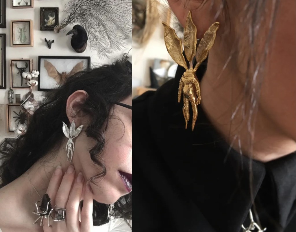 曼德拉草在神秘学与草药学中流传已久。作为茄科植物的一员,曼德拉草含有致幻与麻醉成分,古希腊与罗马时期曾用其根作为麻醉剂。它既承载神秘传说,也有真实的草药学背景。关于它的传说遍布中世纪:诞生于绞刑架下的土地、拔起时会发出致命尖叫、可带来爱情、财富或权力——种种叙述,使其始终游走于危险与庇护之间。作为佩戴之物,曼德拉草既具原始象征意味,也带有「护身」与「召唤」的隐喻。